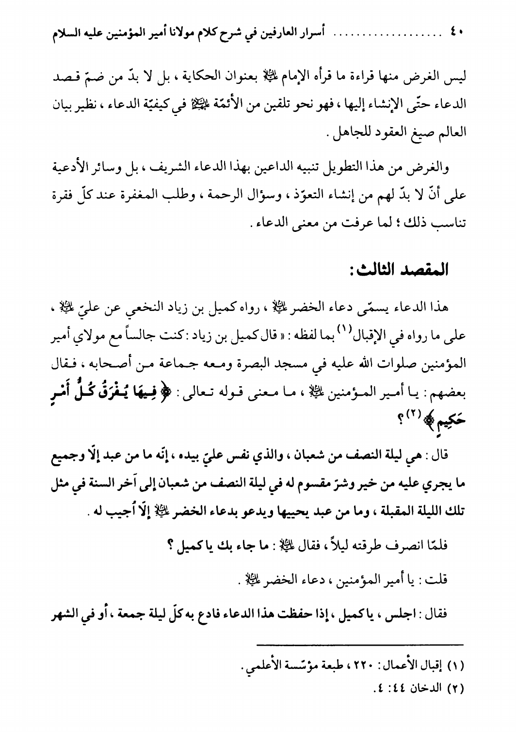 أسرار العارفين، في شرح كلام مولانا أمير المؤمنين ع ، شرح دعاء كميل