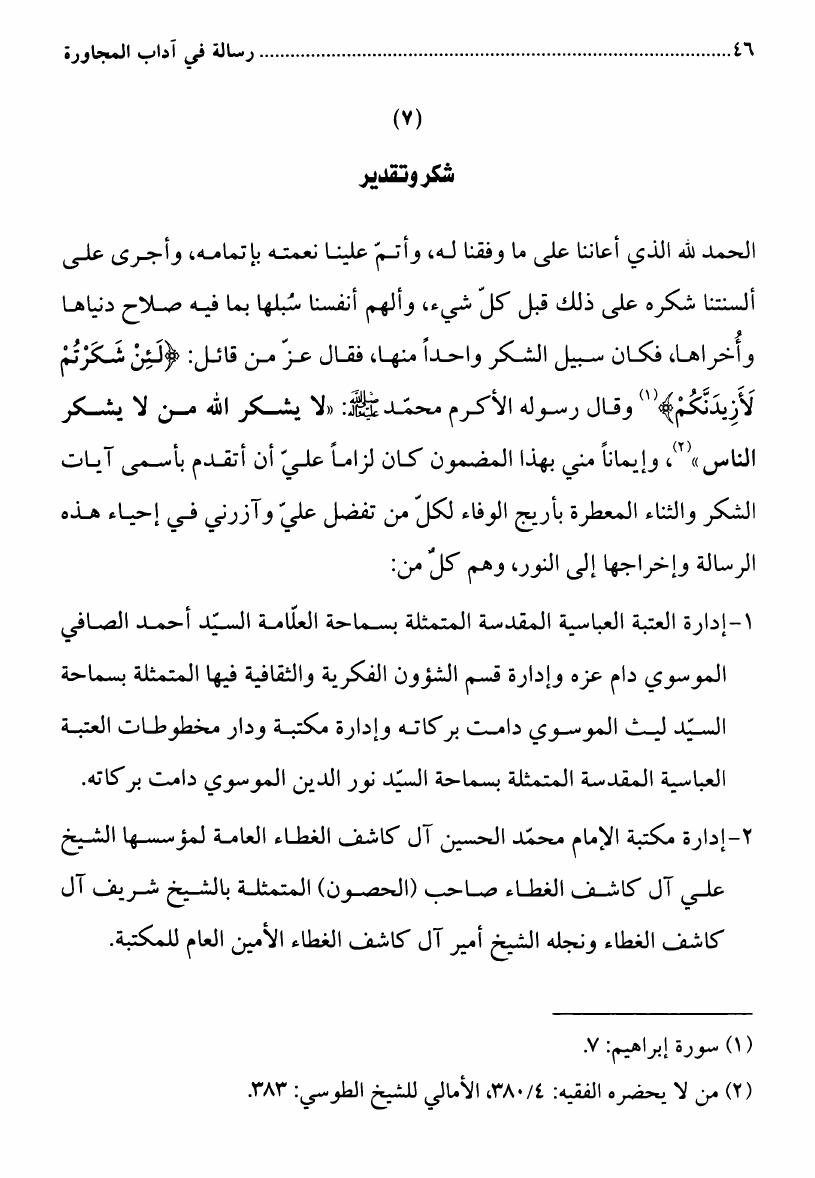 رسالة في آداب المجاورة، مجاورة مشاهد الأئمة ع