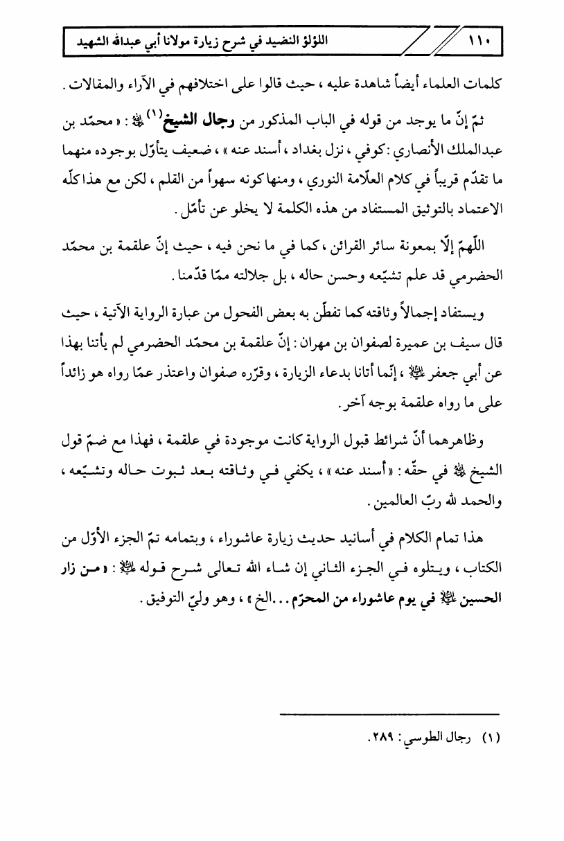 اللؤلؤ النضيد، في شرح زيارة مولانا أبي عبدالله الشهيد