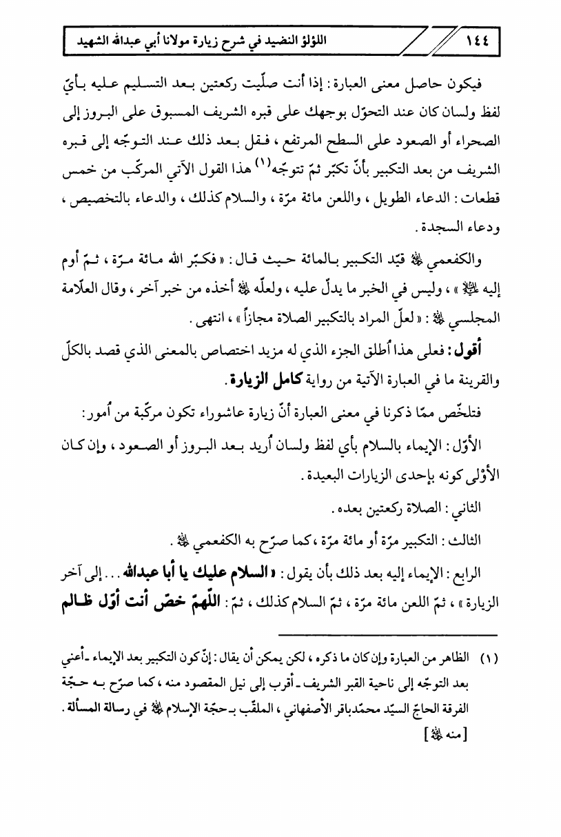 اللؤلؤ النضيد، في شرح زيارة مولانا أبي عبدالله الشهيد