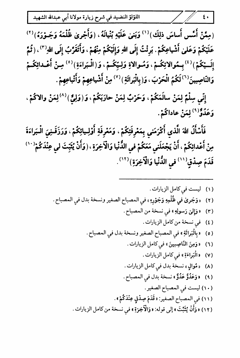 اللؤلؤ النضيد، في شرح زيارة مولانا أبي عبدالله الشهيد