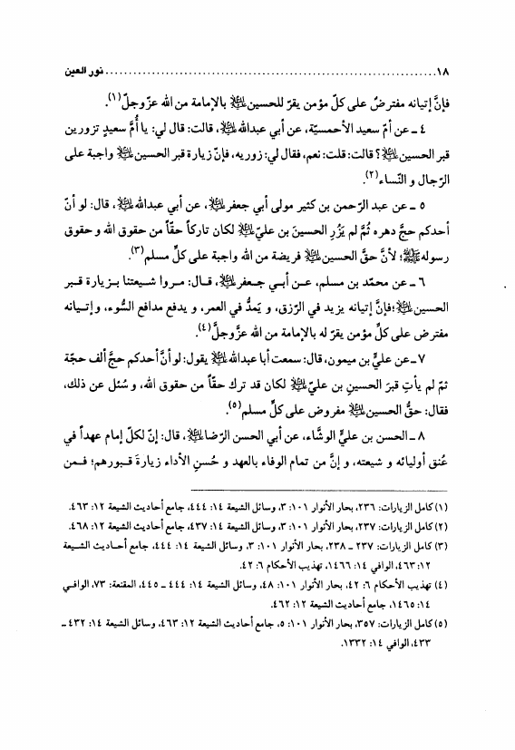 نور العين، في المشي إلى زيارة قبر الحسين ع