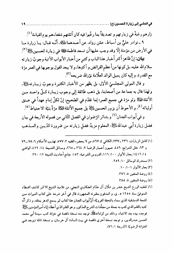 نور العين، في المشي إلى زيارة قبر الحسين ع