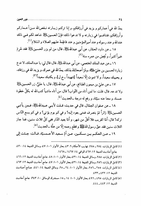 نور العين، في المشي إلى زيارة قبر الحسين ع