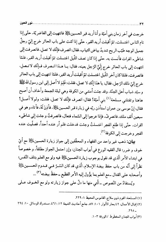 نور العين، في المشي إلى زيارة قبر الحسين ع
