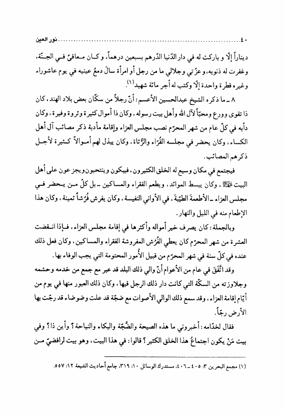 نور العين، في المشي إلى زيارة قبر الحسين ع