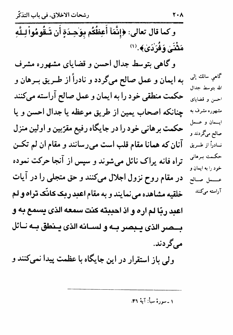 رشحات الأخلاق في باب التفكر
