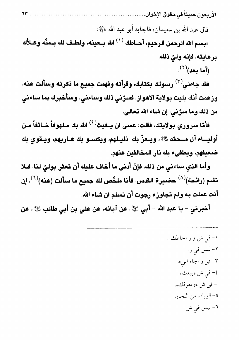 الأربعون حديثاً في حقوق الاخوان