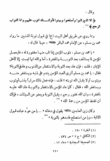 نام کتاب : التوبة والتائبون، دراسة تربوية إسلامية حول مفهوم التوبة على ضوء القرآن الكريم وأحاديث أهل البيت ع نویسنده : مهدي الفتلاوي جلد : 1 صفحه : 111