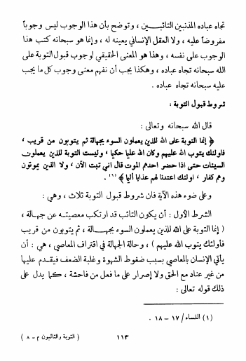 نام کتاب : التوبة والتائبون، دراسة تربوية إسلامية حول مفهوم التوبة على ضوء القرآن الكريم وأحاديث أهل البيت ع نویسنده : مهدي الفتلاوي جلد : 1 صفحه : 113