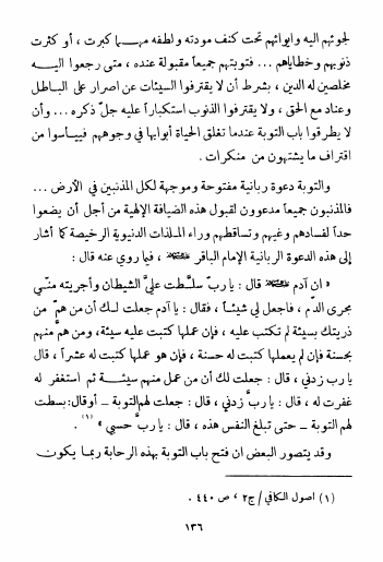 نام کتاب : التوبة والتائبون، دراسة تربوية إسلامية حول مفهوم التوبة على ضوء القرآن الكريم وأحاديث أهل البيت ع نویسنده : مهدي الفتلاوي جلد : 1 صفحه : 136