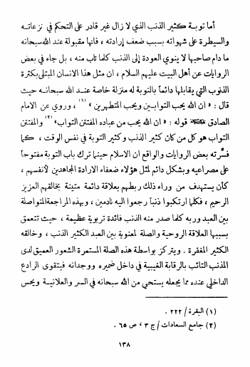 نام کتاب : التوبة والتائبون، دراسة تربوية إسلامية حول مفهوم التوبة على ضوء القرآن الكريم وأحاديث أهل البيت ع نویسنده : مهدي الفتلاوي جلد : 1 صفحه : 138