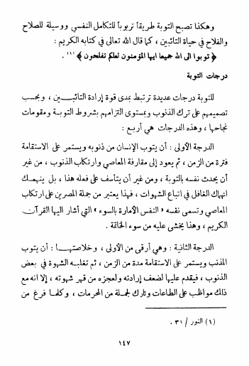 نام کتاب : التوبة والتائبون، دراسة تربوية إسلامية حول مفهوم التوبة على ضوء القرآن الكريم وأحاديث أهل البيت ع نویسنده : مهدي الفتلاوي جلد : 1 صفحه : 147