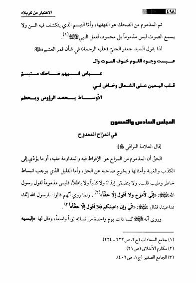 نام کتاب : الإعتبار في كربلاء ، تطبيقات تأريخية على مفردات أخلاقية من جامع السعادات للعلامة النراقي نویسنده : السيد حسين بن السيد شبر التوبلي البحراني جلد : 1 صفحه : 498