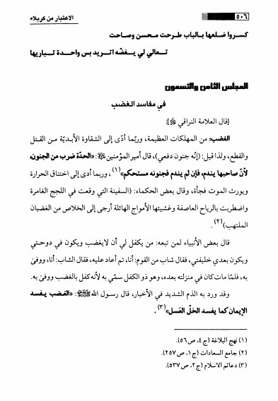 نام کتاب : الإعتبار في كربلاء ، تطبيقات تأريخية على مفردات أخلاقية من جامع السعادات للعلامة النراقي نویسنده : السيد حسين بن السيد شبر التوبلي البحراني جلد : 1 صفحه : 506