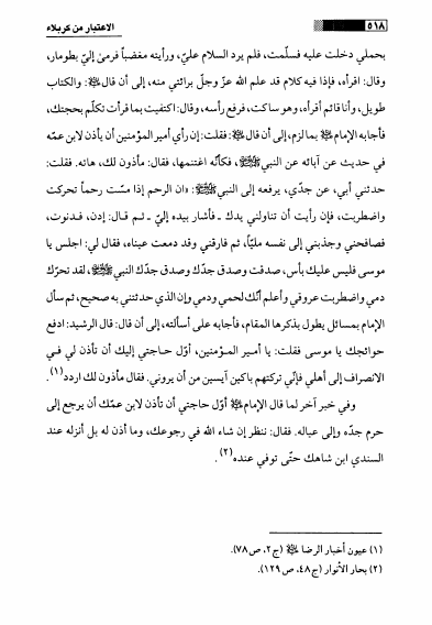 نام کتاب : الإعتبار في كربلاء ، تطبيقات تأريخية على مفردات أخلاقية من جامع السعادات للعلامة النراقي نویسنده : السيد حسين بن السيد شبر التوبلي البحراني جلد : 1 صفحه : 518