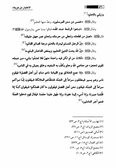 نام کتاب : الإعتبار في كربلاء ، تطبيقات تأريخية على مفردات أخلاقية من جامع السعادات للعلامة النراقي نویسنده : السيد حسين بن السيد شبر التوبلي البحراني جلد : 1 صفحه : 520