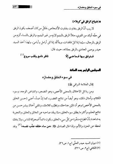 نام کتاب : الإعتبار في كربلاء ، تطبيقات تأريخية على مفردات أخلاقية من جامع السعادات للعلامة النراقي نویسنده : السيد حسين بن السيد شبر التوبلي البحراني جلد : 1 صفحه : 531
