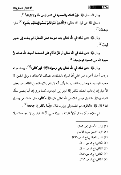 نام کتاب : الإعتبار في كربلاء ، تطبيقات تأريخية على مفردات أخلاقية من جامع السعادات للعلامة النراقي نویسنده : السيد حسين بن السيد شبر التوبلي البحراني جلد : 1 صفحه : 538