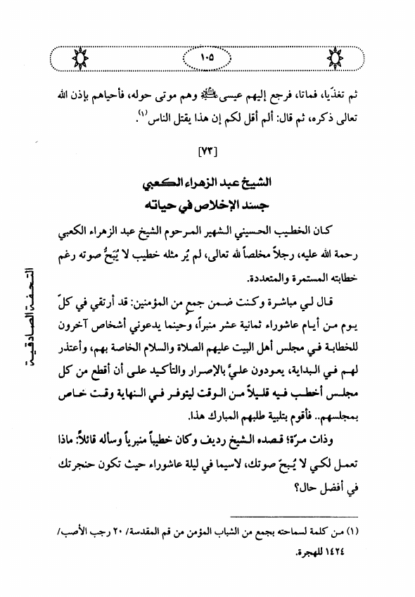التحفة الصادقية، أكثر من مائة وثلاثين قصة وحكاية اقتطفت من خطب ومواعظ