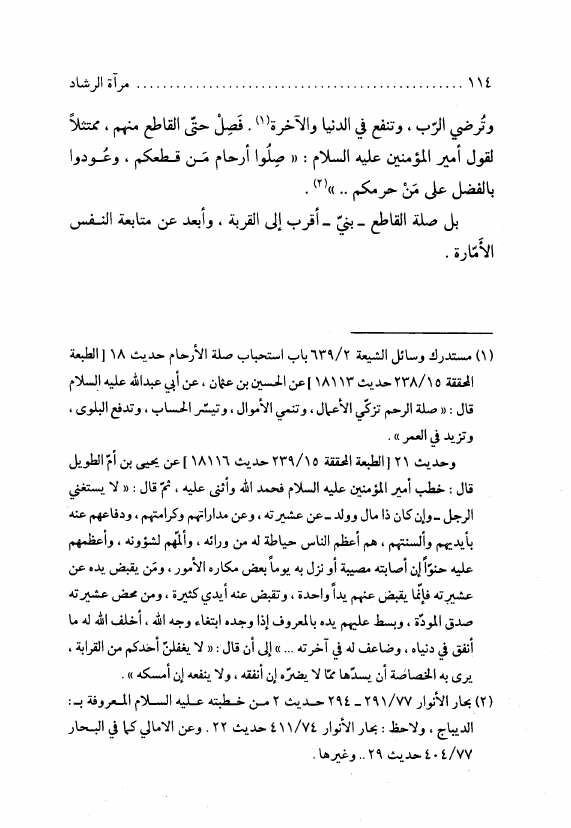 مرآة الرشاد ، في الوصية الى الأحبة والذرية والأولاد