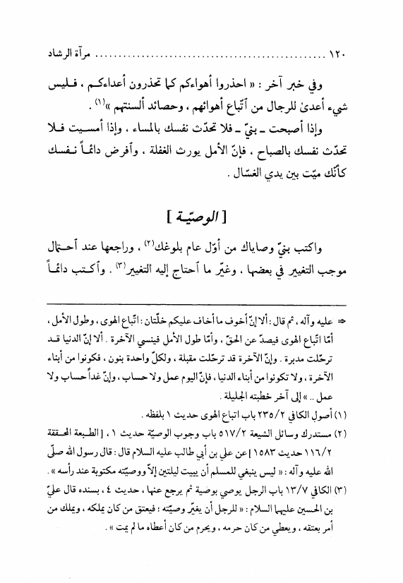 مرآة الرشاد ، في الوصية الى الأحبة والذرية والأولاد