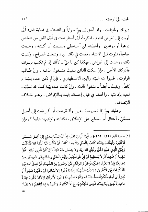 مرآة الرشاد ، في الوصية الى الأحبة والذرية والأولاد
