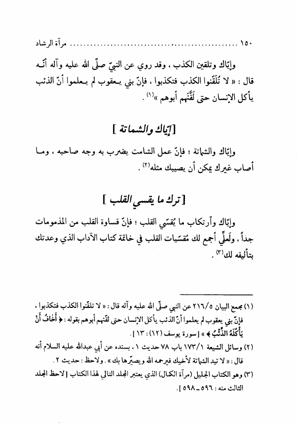 مرآة الرشاد ، في الوصية الى الأحبة والذرية والأولاد