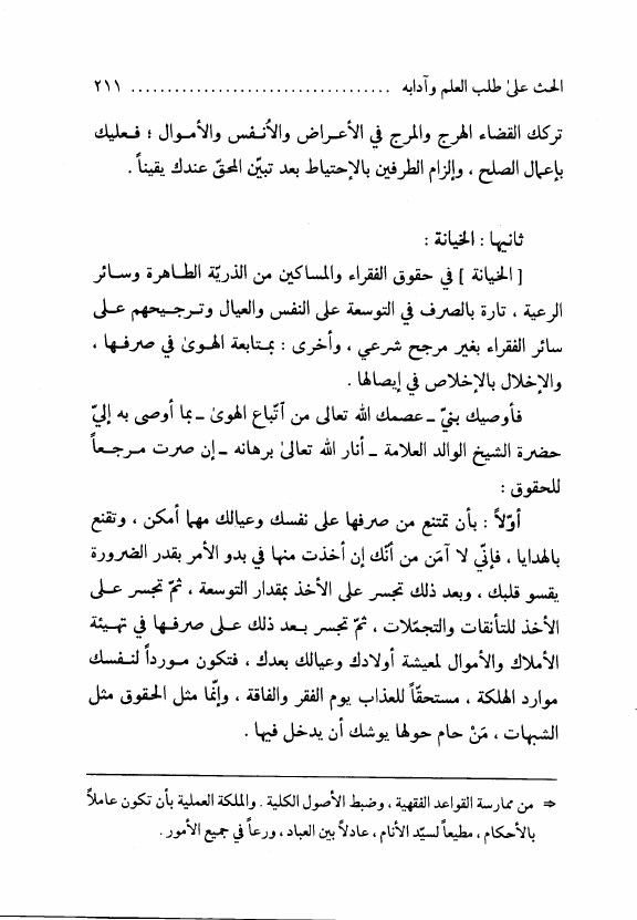 مرآة الرشاد ، في الوصية الى الأحبة والذرية والأولاد