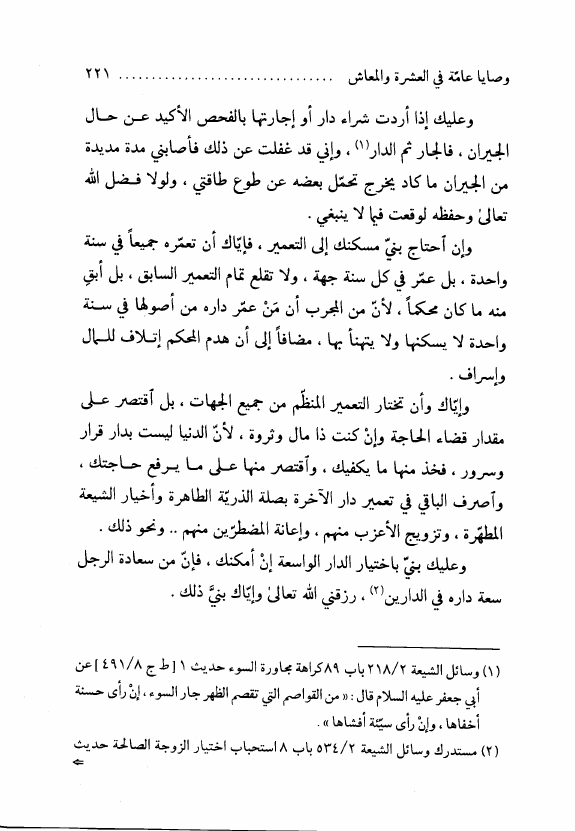مرآة الرشاد ، في الوصية الى الأحبة والذرية والأولاد