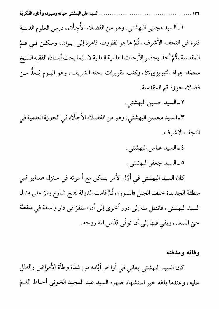 آية الله العظمى السيد علي الحسيني البهشتي، حياته وسيرته وآثاره الفقهية