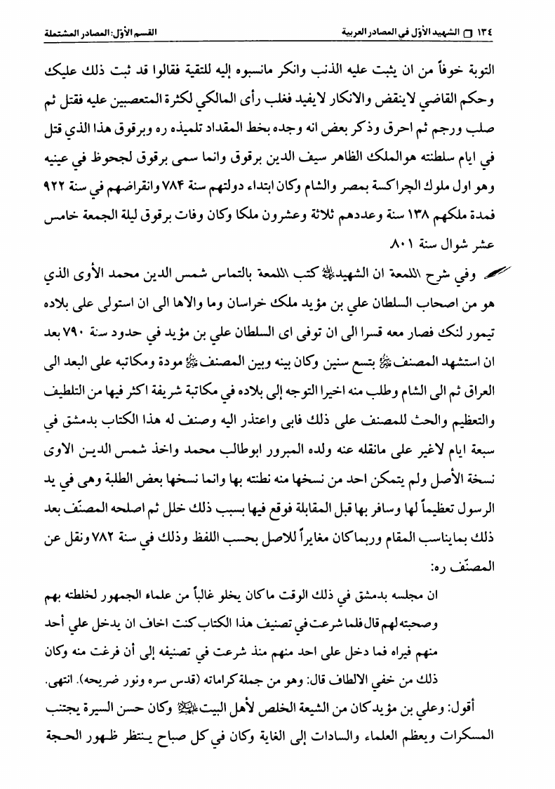 الشهيد الأول محمد بن مكي العاملي، في المصادر العربية