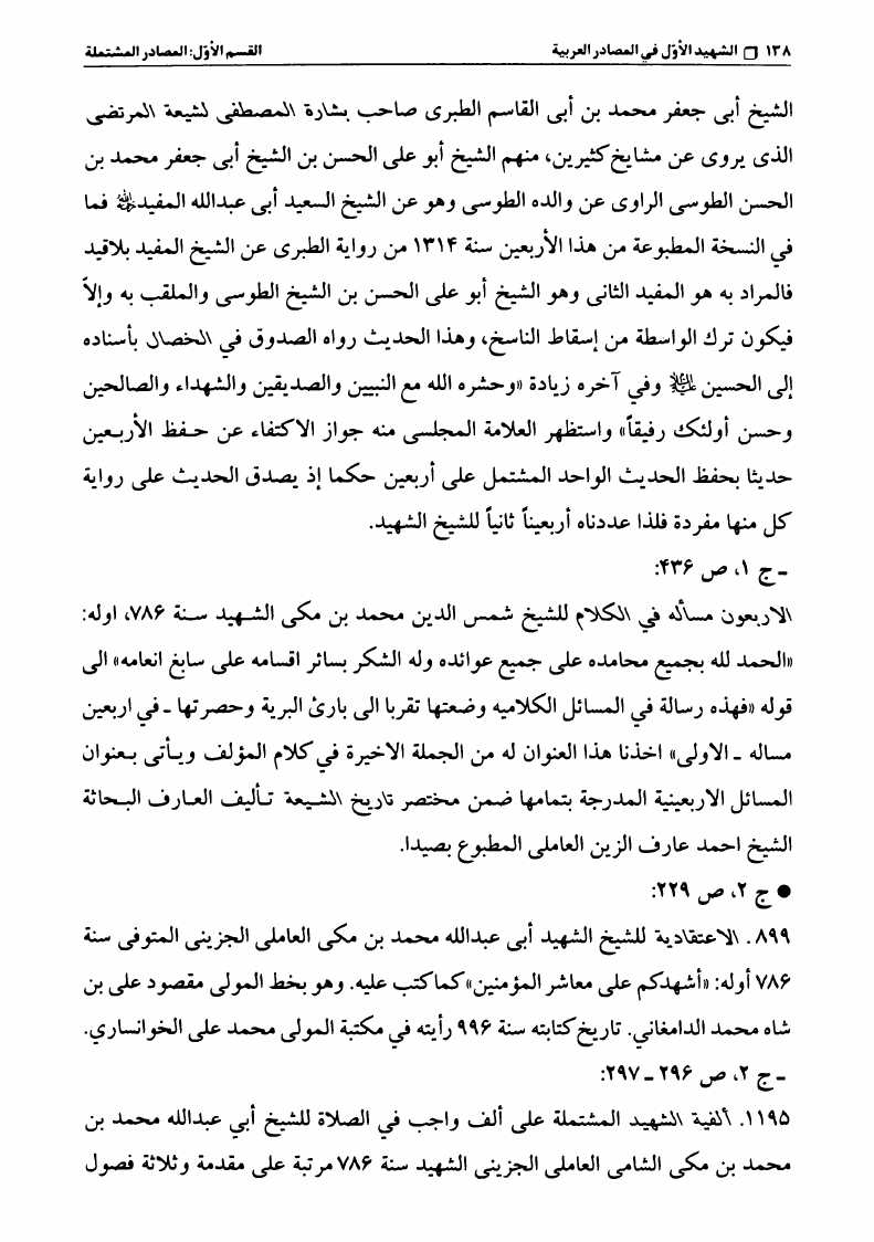 الشهيد الأول محمد بن مكي العاملي، في المصادر العربية
