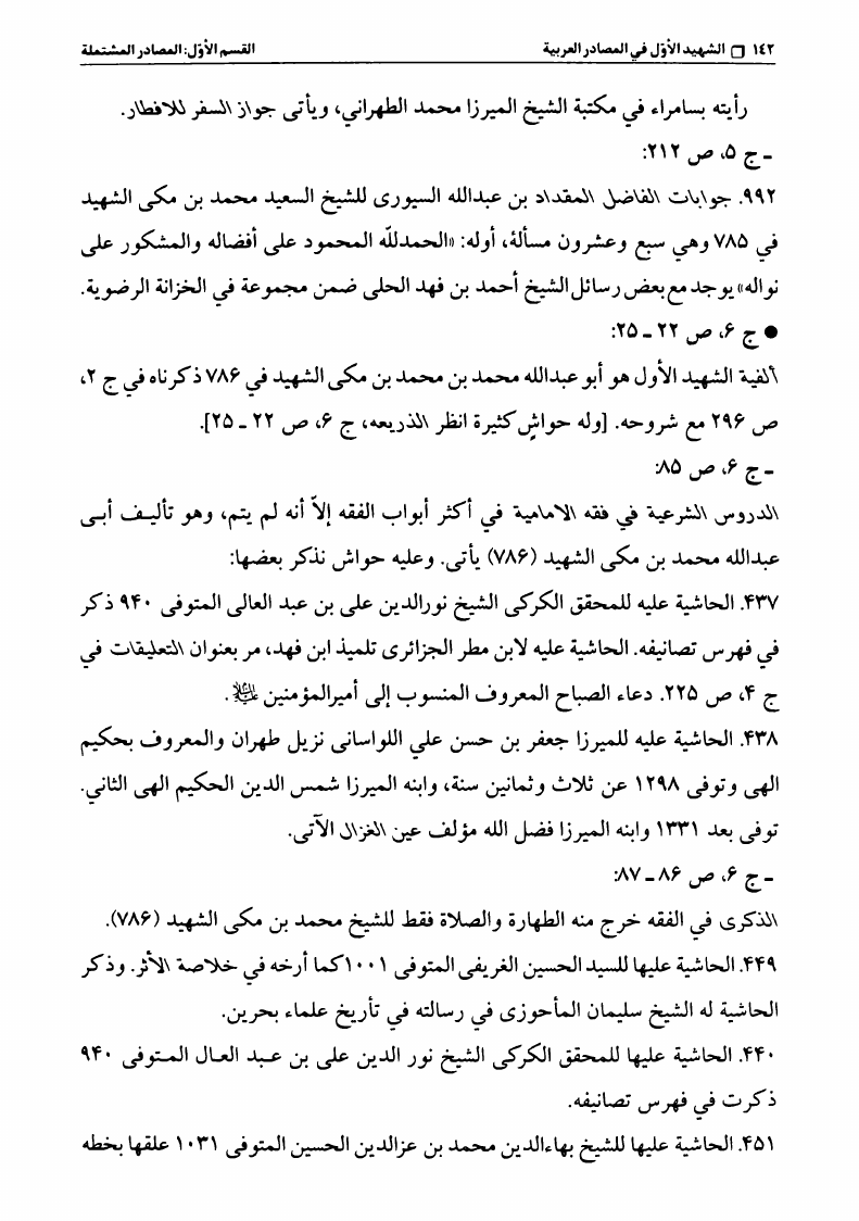 الشهيد الأول محمد بن مكي العاملي، في المصادر العربية