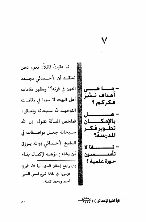 الوعي المدرسي لفكر الشيح الأحسائي الرسالي