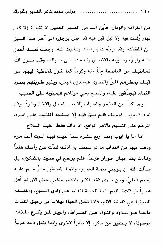 بولس سلامة شاعر الغدير وكربلاء، في الزمن الأخير
