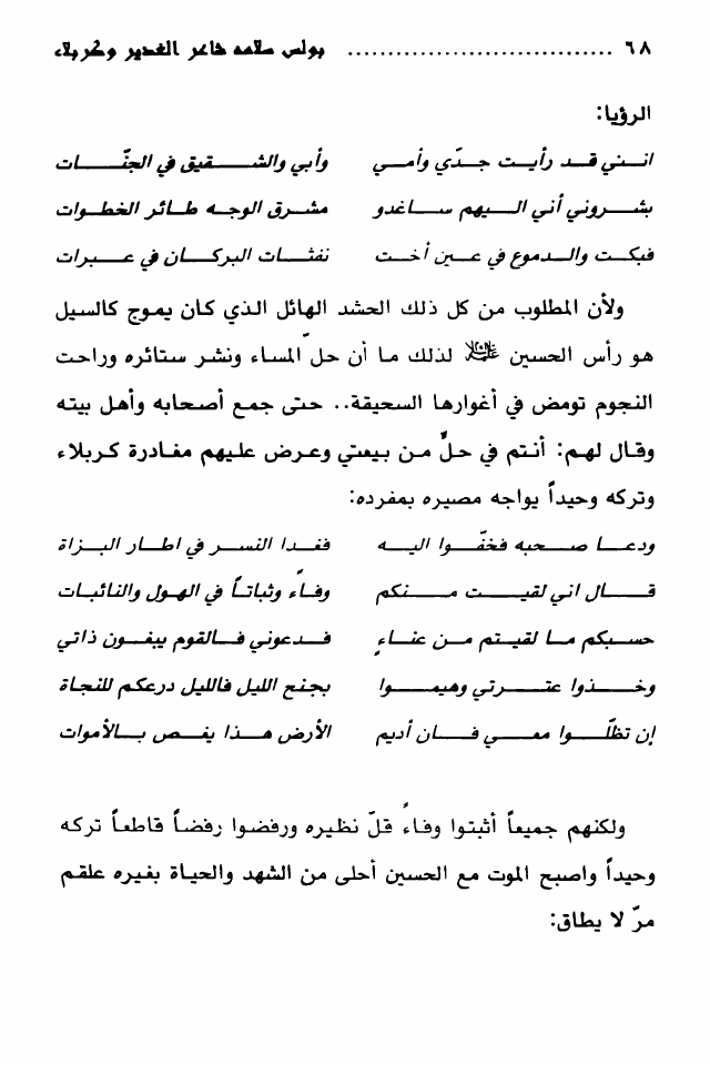 بولس سلامة شاعر الغدير وكربلاء، في الزمن الأخير