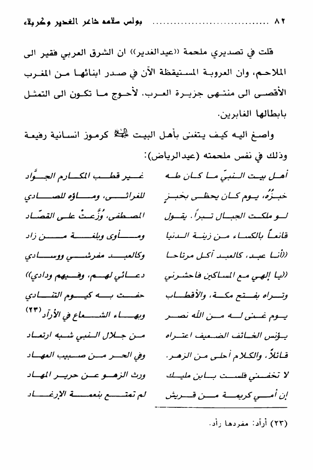 بولس سلامة شاعر الغدير وكربلاء، في الزمن الأخير