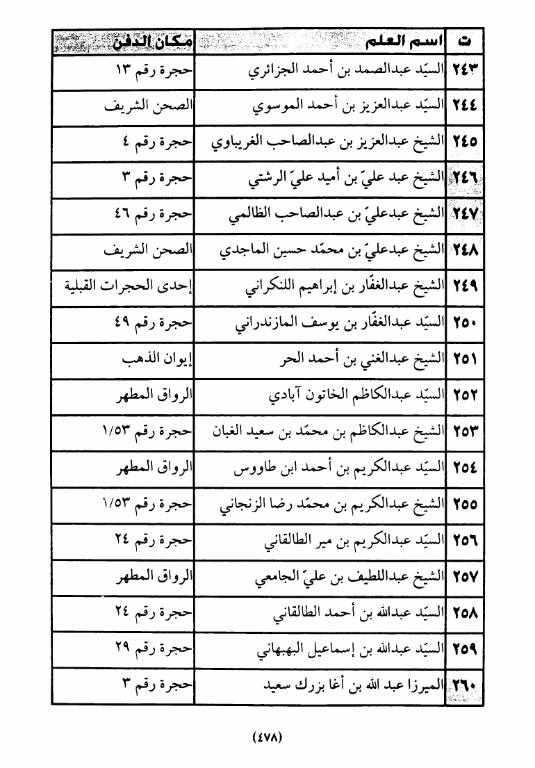 مشاهير المدفونين، في الصحن العلوي الشريف