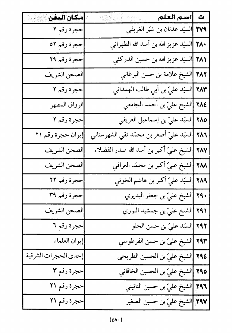 مشاهير المدفونين، في الصحن العلوي الشريف