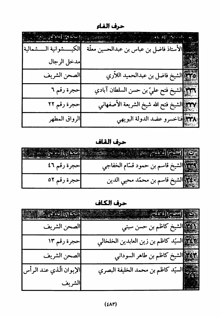 مشاهير المدفونين، في الصحن العلوي الشريف