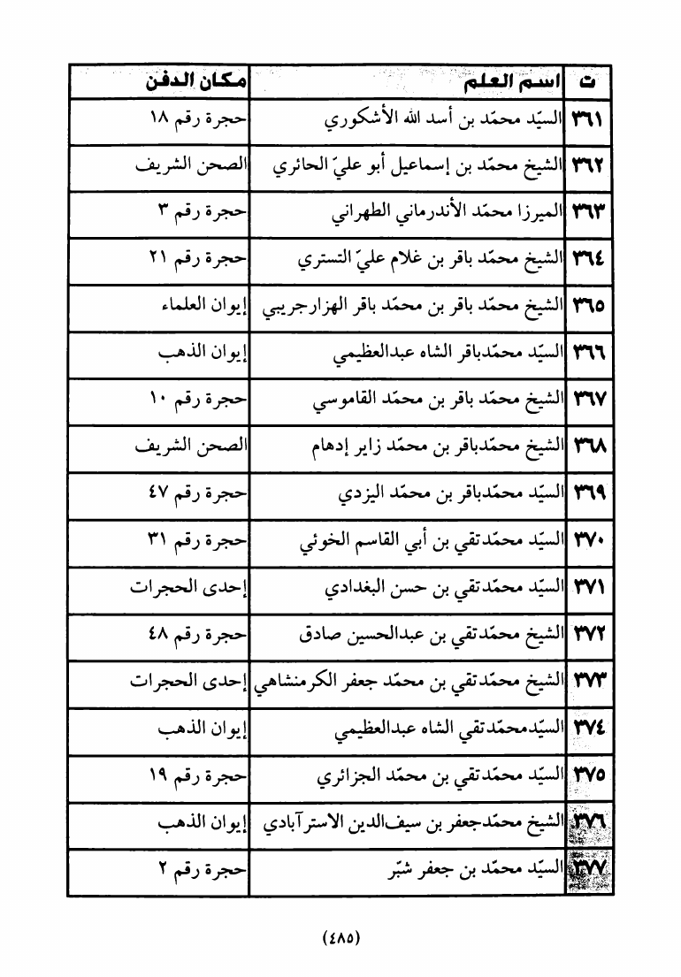 مشاهير المدفونين، في الصحن العلوي الشريف