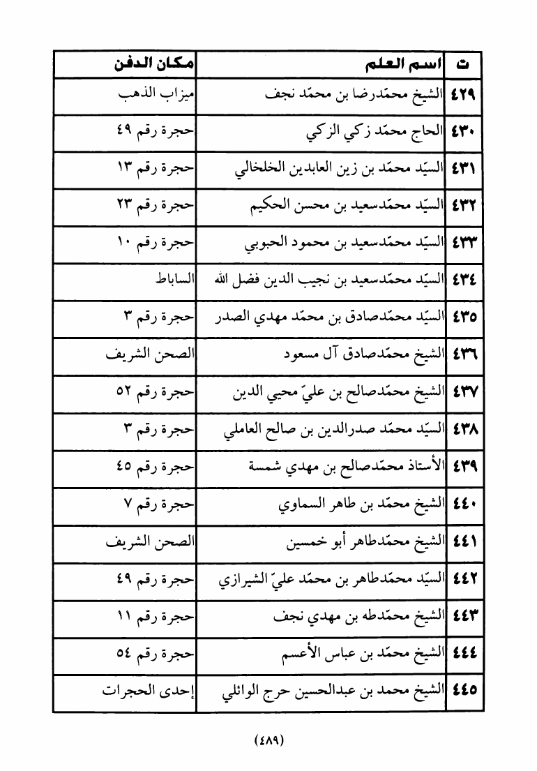 مشاهير المدفونين، في الصحن العلوي الشريف