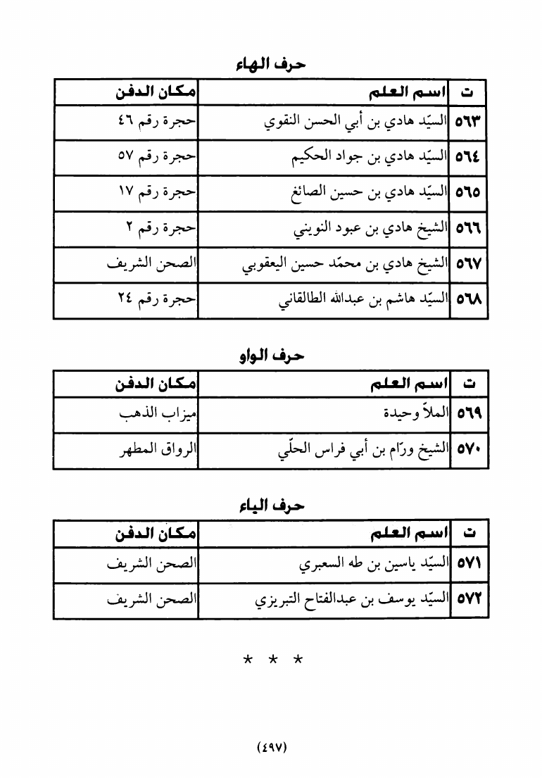 مشاهير المدفونين، في الصحن العلوي الشريف