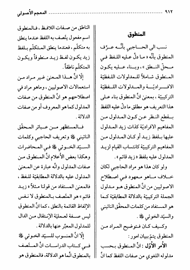 نام کتاب : المعجم الأصولي، يتناول بالشرح معظم المصطلحات الأصولية وتحرير مسائل الأصول بحسب الترتيب الهجائي نویسنده : الشيخ محمد صنقور علي البحراني جلد : 1 صفحه : 912