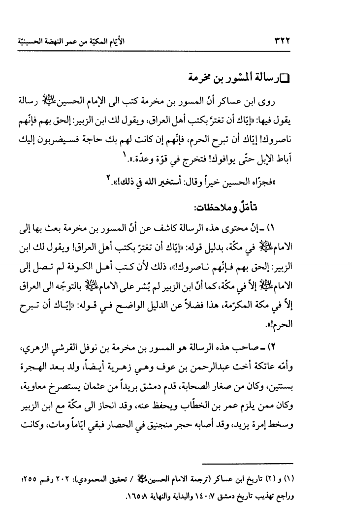 الأيام المكية من عمر النهضة الحسينية