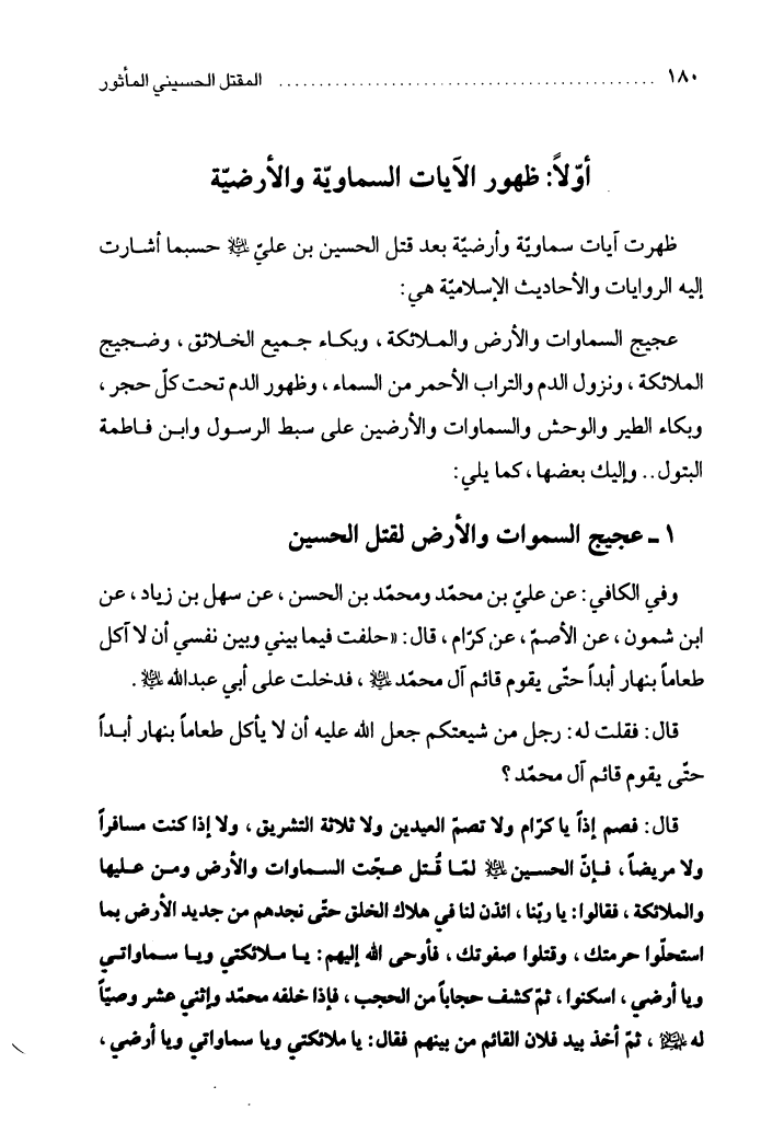 المقتل الحسيني المأثور، عرض روائي لأحداث كربلاء على لسان المعصومين