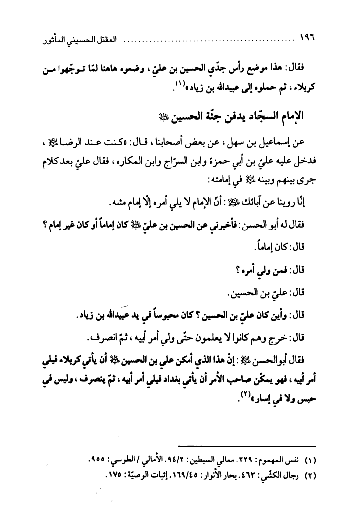 المقتل الحسيني المأثور، عرض روائي لأحداث كربلاء على لسان المعصومين