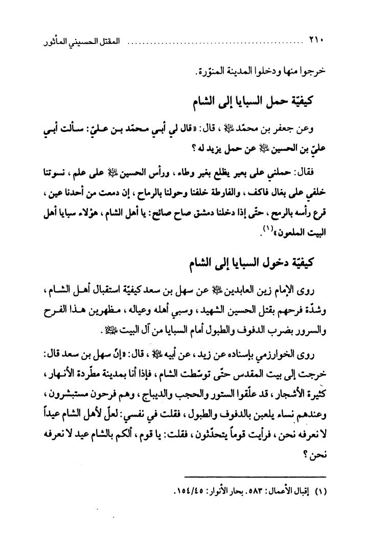 المقتل الحسيني المأثور، عرض روائي لأحداث كربلاء على لسان المعصومين