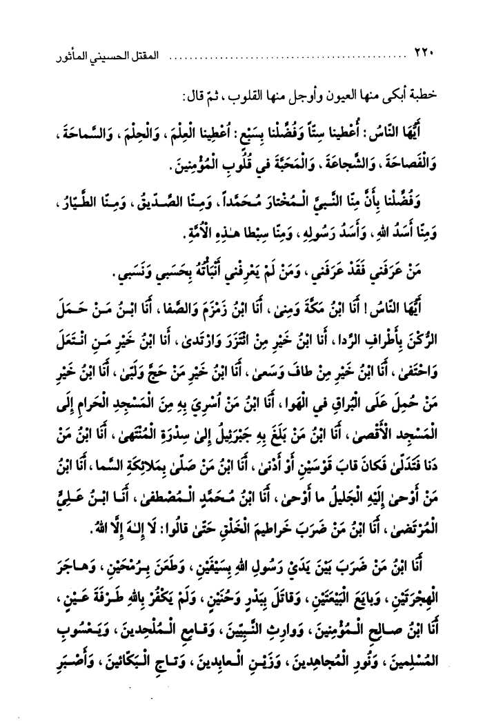 المقتل الحسيني المأثور، عرض روائي لأحداث كربلاء على لسان المعصومين